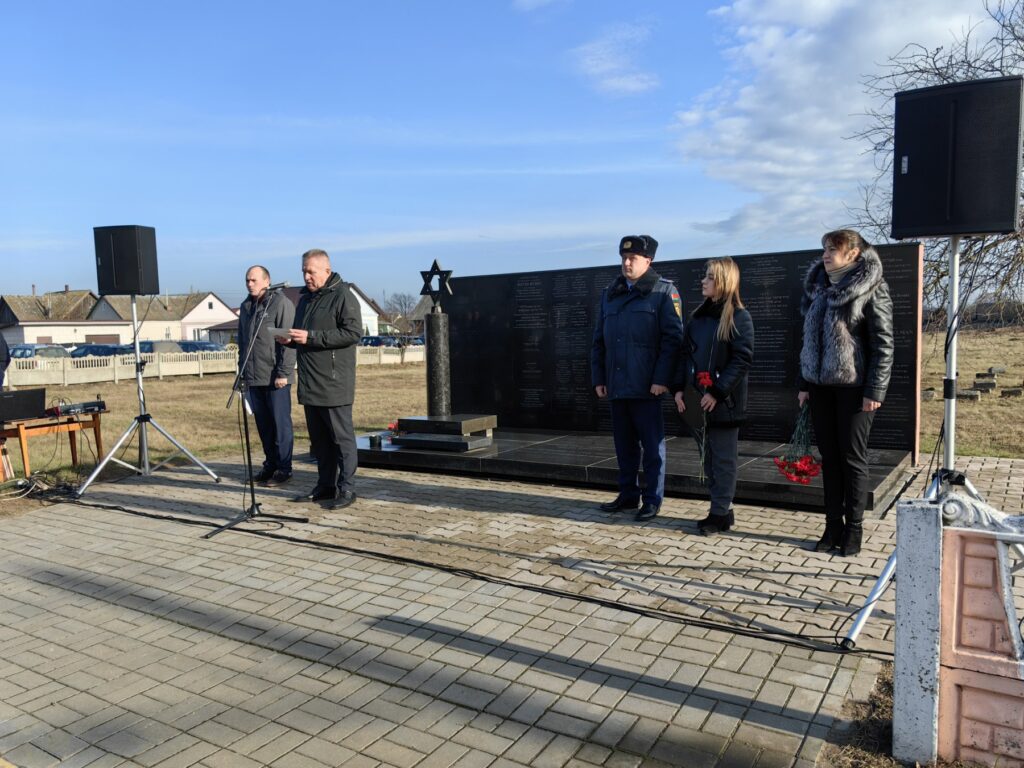 Участники траурной церемонии почтили память безвинных жертв фашизма минутой молчания, а также возложили цветы к монументу.