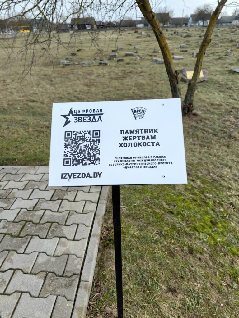 Кроме того, в рамках проекта «Цифровая звезда», реализуемого РОО «БРСМ», рядом с памятным знаком установлена информационная шильда с его описанием, а также с QR-кодом, по ссылке которого в сети Интернет можно ознакомиться с более полной информацией о данном месте и иными материалами по теме Холокоста.