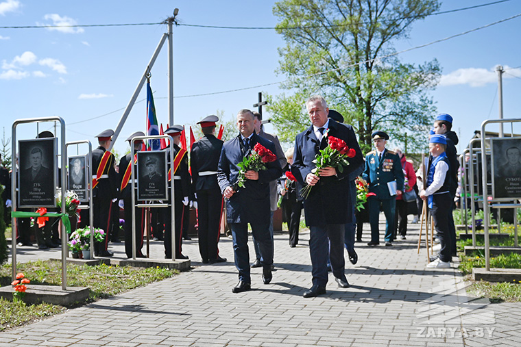 Присутствующие почтили память погибших минутой молчания, после чего возложили цветы у мемориала.