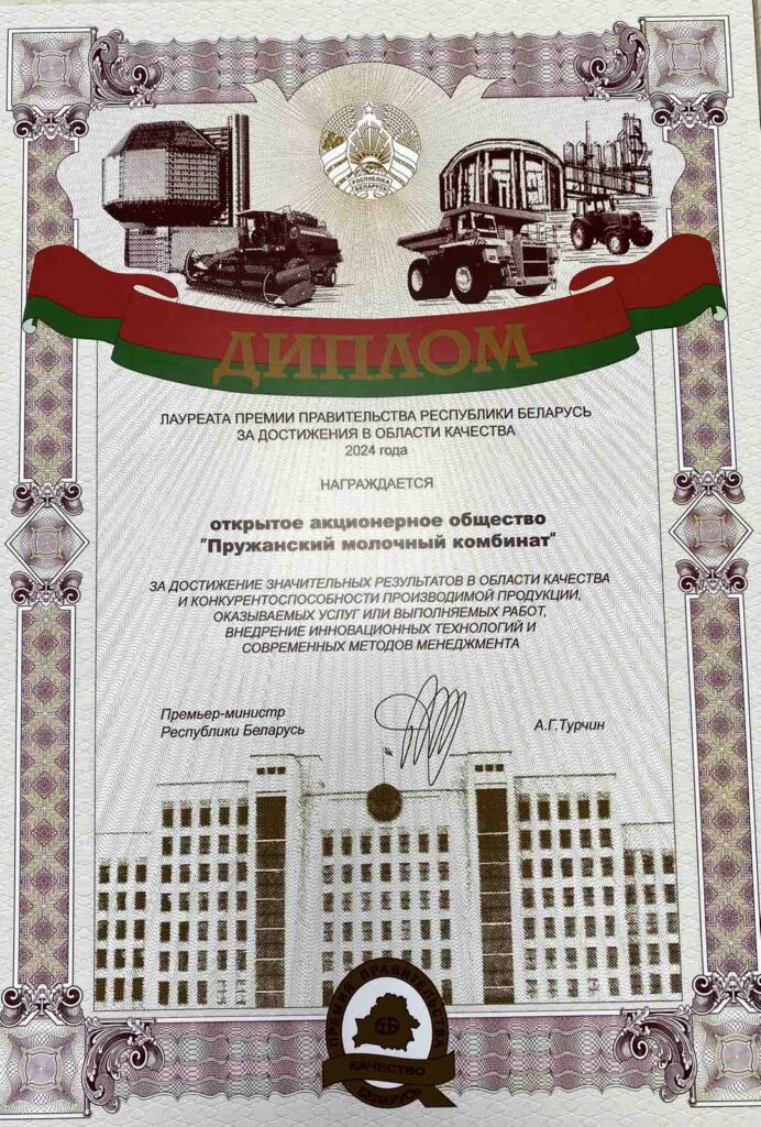 Пружанский молочный комбинат – лауреат Премии Правительства за достижения в области качества