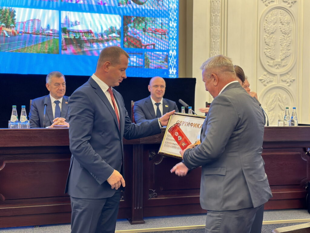 Заслуженные награды директору комбината Александру Лосю, а также другим номинантам вручил председатель организационного комитета конкурса – первый заместитель Управляющего делами Президента Республики Беларусь Николай Шкред.