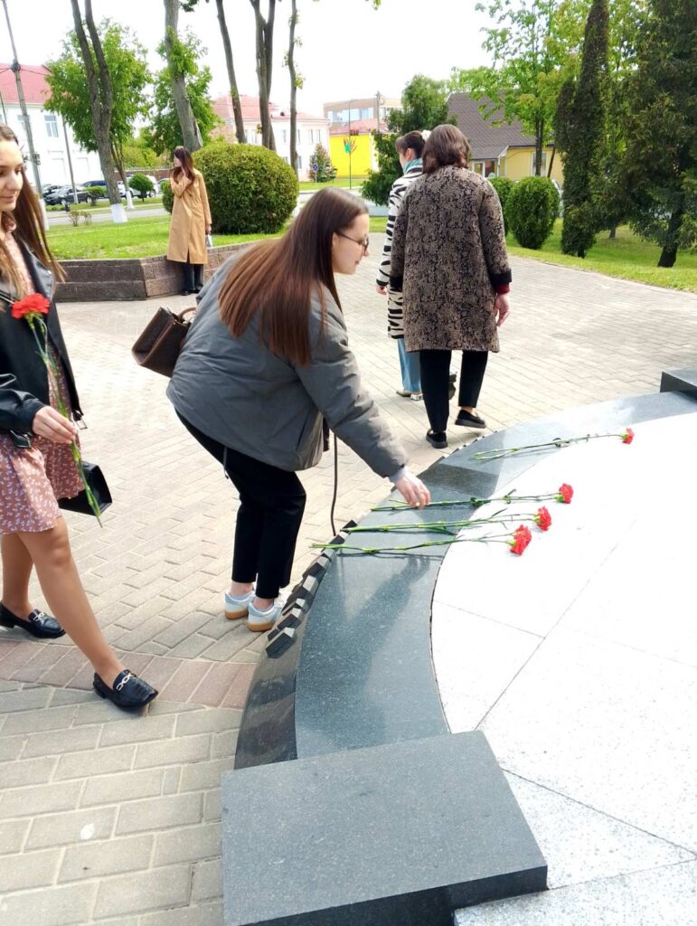 Участники квеста почтили минутой молчания погибших во время Великой Отечественной войны и возложили цветы к памятнику «Сожженным деревням».