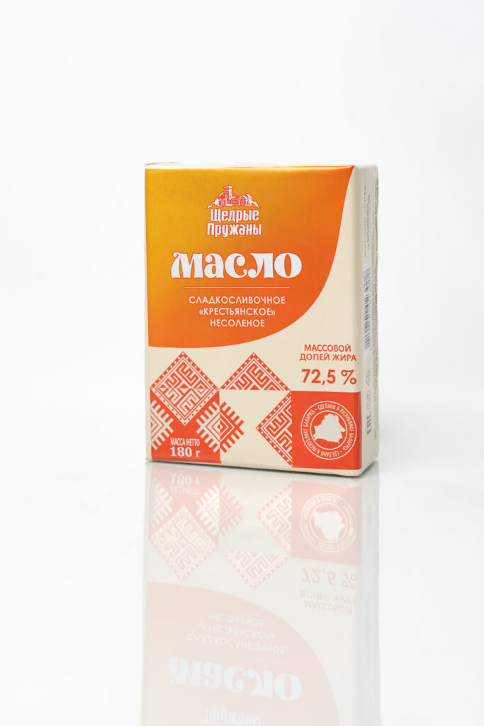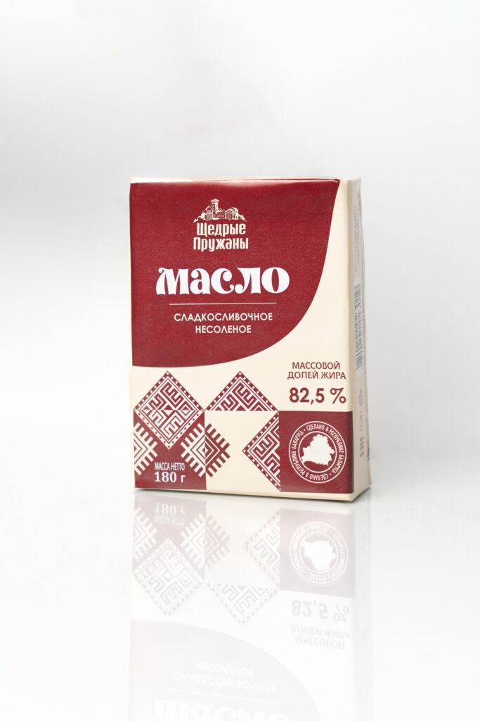 Это масло сладкосливочное «Крестьянское» несоленое массовой долей жира 72,5%, масло сладкосливочное несоленое массовой долей жира 82,5%, сыр «Российский классик» массовой долей жира в сухом веществе 50%, сыр «Пармезан Ультра» массовой долей жира в сухом веществе 45% Пружанского молочного комбината.