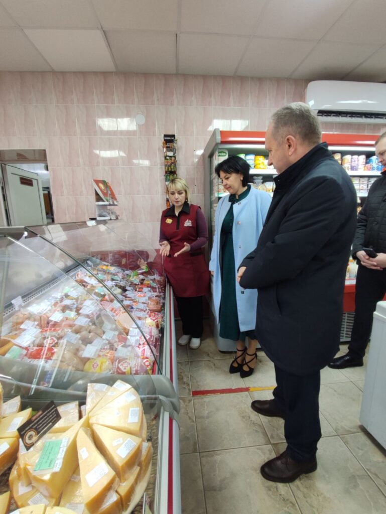 В продолжение знакомства с инфраструктурой ОАО «Пружанский молочный комбинат» Юрий Наркевич посетил фирменный магазин предприятия «Верас-1».